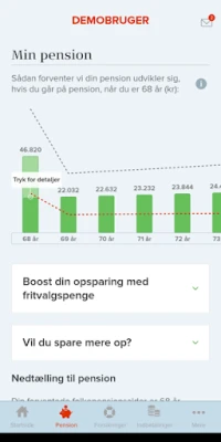 Med app’en kan du se: - Hvor meget du har sparet op - Hvad du har fået i afkast - Hvor meget der er indbetalt - Hvor meget du kan forvente at få udbetalt i pension - Hvilke forsikringer du har i Industriens Pension - Din post fra Industriens Pension - Hvor meget din pensionsordning bidrager til den grønne omstilling