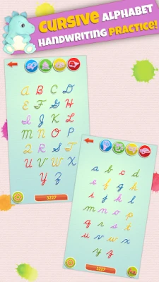 "LetraKid Cursive: Kids Writing" is an educational learning game app for kids 4, 5, 6, 7, 8 years old that can help them to learn to write cursive letters, while having fun when doing so!