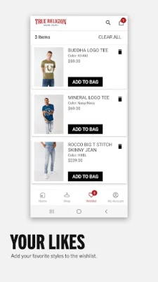 Premium denim rooted in streetwear, now with a mobile shopping experience that fits in our signature back pocket. Download the True Religion app and enjoy exclusive access to official drops, quality signature stitch denim, graphic tees, active sets, accessories, everyday jeans, and so much more. Even better, you can enjoy easy access to our exclusive denim deals and save big when you upgrade your streetwear wardrobe. Did we mention that you'll be among the first to know about new product launches and collaborations?