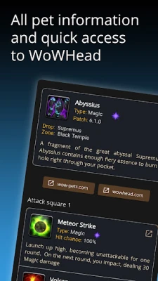 Search them by type, name, patch, expansion or source. Discover their exact location, their attacks and all the information. Add them to favorites and collect them.